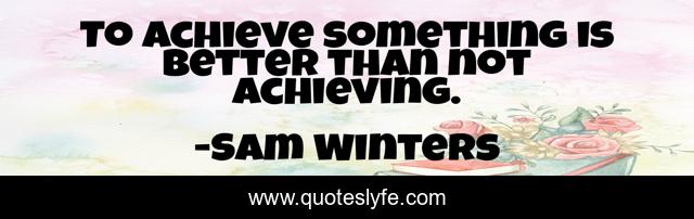 This page presents the quote "To achieve something is better than not achieving.". Author of this quote is Sam Winters. This quote is about life, experiences, achievement,.