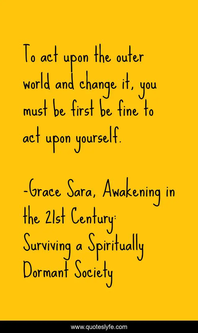 "Grace Sara, Awakening in the 21st Century: Surviving a Spiritually Dormant Society Quotes." Quoteslyfe.com, 2025. Fri. 05 Dec. 2025. <https://www.quoteslyfe.com/quote/To-act-upon-the-outer-world-and-15477>.