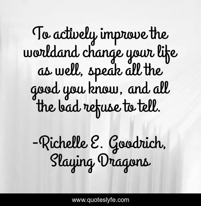 "Richelle E. Goodrich, Slaying Dragons Quotes." Quoteslyfe.com, 2025. Sun. 07 Dec. 2025. <https://www.quoteslyfe.com/quote/To-actively-improve-the-worldand-change-your-189309>.