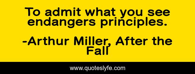 This page presents the quote "To admit what you see endangers principles.". Author of this quote is Arthur Miller, After the Fall. This quote is about honesty, principles,.