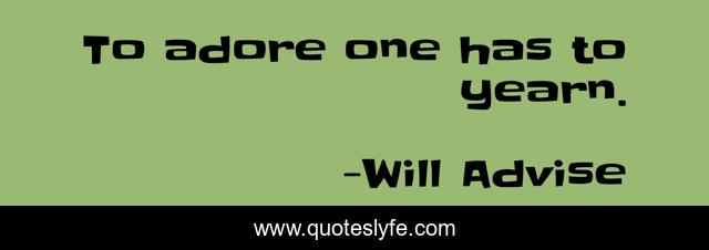 This page presents the quote "To adore one has to yearn.". Author of this quote is Will Advise. This quote is about relationships, love, yearning, adore, need, affection,.