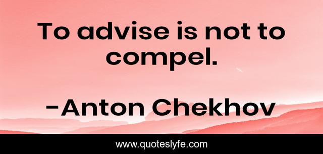 This page presents the quote "To advise is not to compel.". Author of this quote is Anton Chekhov. This quote is about advise, compel,.
