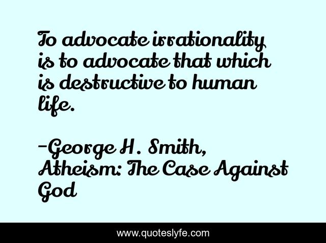 This page presents the quote "To advocate irrationality is to advocate that which is destructive to human life.". Author of this quote is George H. Smith, Atheism: The Case Against God. This quote is about atheism, philosophy,.
