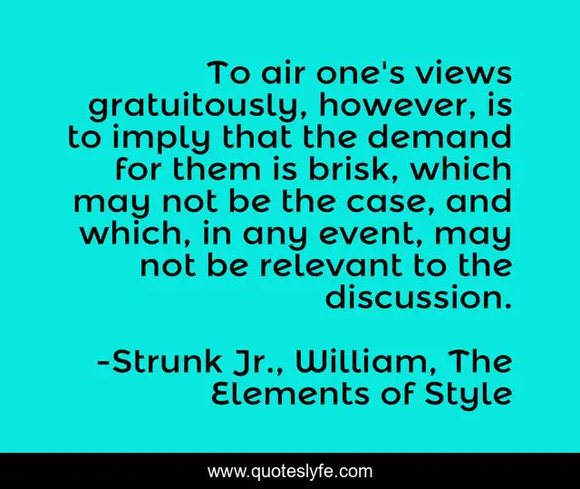 "Strunk Jr., William, The Elements of Style Quotes." Quoteslyfe.com, 2025. Fri. 05 Dec. 2025. <https://www.quoteslyfe.com/quote/To-air-one-s-views-gratuitously-however-219179>.