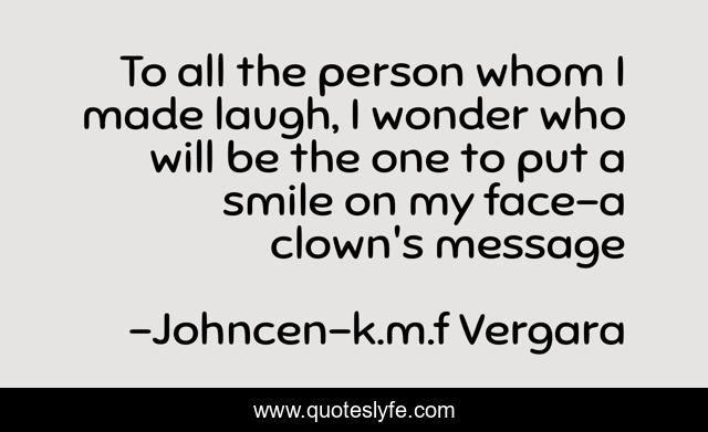 This page presents the quote "To all the person whom I made laugh, I wonder who will be the one to put a smile on my face-a clown's message". Author of this quote is Johncen-k.m.f Vergara. This quote is about life-of-a-clown, sadness, hope, tragedy, truth,.
