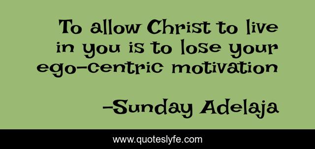 This page presents the quote "To allow Christ to live in you is to lose your ego-centric motivation". Author of this quote is Sunday Adelaja. This quote is about christ, allow, lose,.