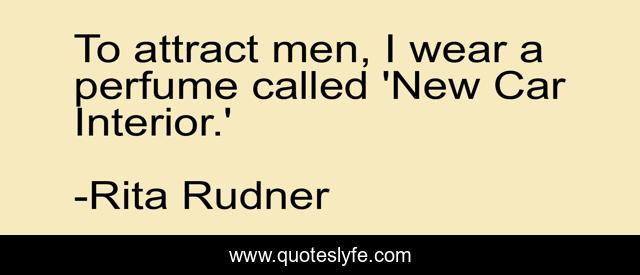 This page presents the quote "To attract men, I wear a perfume called 'New Car Interior.'". Author of this quote is Rita Rudner. This quote is about new, men, new car,.