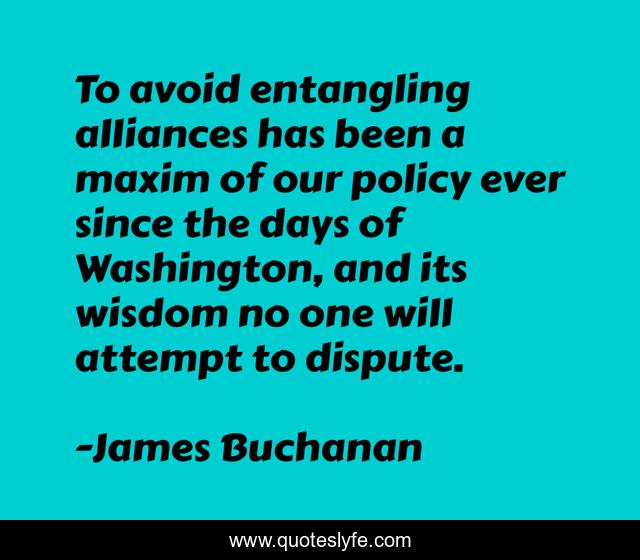 This page presents the quote "To avoid entangling alliances has been a maxim of our policy ever since the days of Washington, and its wisdom no one will attempt to dispute.". Author of this quote is James Buchanan. This quote is about avoid, washington,.