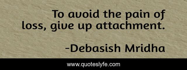 This page presents the quote "To avoid the pain of loss, give up attachment.". Author of this quote is Debasish Mridha. This quote is about life, love, knowledge, inspirational, intelligence, philosophy, wisdom, quotes, affection,.