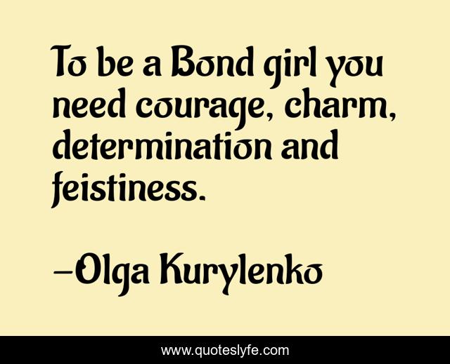 This page presents the quote "To be a Bond girl you need courage, charm, determination and feistiness.". Author of this quote is Olga Kurylenko. This quote is about girl, determination,.