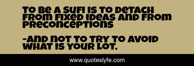 This page presents the quote "To be a Sufi is to detach from fixed ideas and from preconceptions". Author of this quote is and not to try to avoid what is your lot.. This quote is about idries shah, the way of the sufi,.