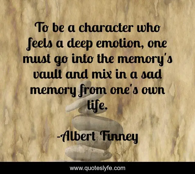 This page presents the quote "To be a character who feels a deep emotion, one must go into the memory's vault and mix in a sad memory from one's own life.". Author of this quote is Albert Finney. This quote is about life, character, deep,.