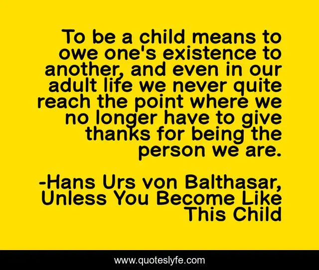"Hans Urs von Balthasar, Unless You Become Like This Child Quotes." Quoteslyfe.com, 2025. Mon. 08 Dec. 2025. <https://www.quoteslyfe.com/quote/To-be-a-child-means-to-owe-11063>.
