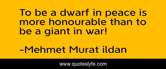 This page presents the quote "To be a dwarf in peace is more honourable than to be a giant in war!". Author of this quote is Mehmet Murat ildan. .
