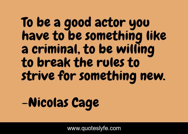 This page presents the quote "To be a good actor you have to be something like a criminal, to be willing to break the rules to strive for something new.". Author of this quote is Nicolas Cage. This quote is about rules, actor,.