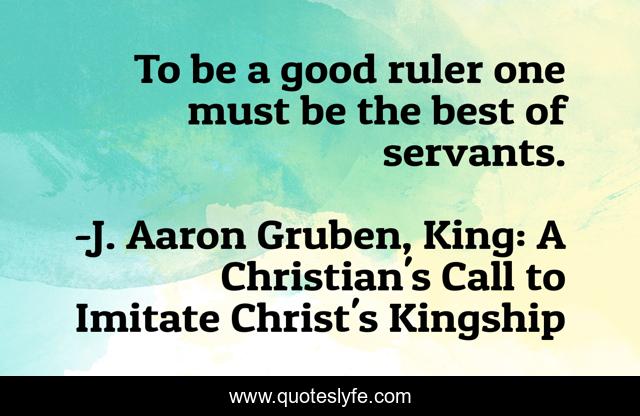 This page presents the quote "To be a good ruler one must be the best of servants.". Author of this quote is J. Aaron Gruben, King: A Christian's Call to Imitate Christ's Kingship. This quote is about king, christian, servant, ruler, christian-behavior, christian-life,.
