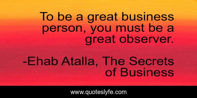 This page presents the quote "To be a great business person, you must be a great observer.". Author of this quote is Ehab Atalla, The Secrets of Business. This quote is about skills, business, entrepreneurship,.