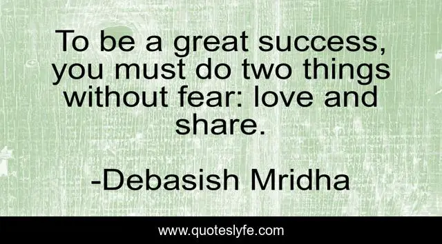This page presents the quote "To be a great success, you must do two things without fear: love and share.". Author of this quote is Debasish Mridha. This quote is about love, great-success, success, debasish-mridha, philosophy, share, quotes, debasish-mridha-md, inspirational,.