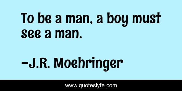 This page presents the quote "To be a man, a boy must see a man.". Author of this quote is J.R. Moehringer. This quote is about maturity, discipleship, mentoring,.