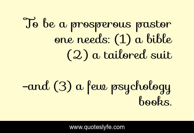 This page presents the quote "To be a prosperous pastor one needs: (1) a bible (2) a tailored suit". Author of this quote is and (3) a few psychology books.. .