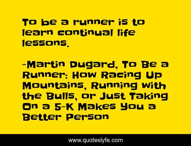 "Martin Dugard, To Be a Runner: How Racing Up Mountains, Running with the Bulls, or Just Taking On a 5-K Makes You a Better Person Quotes." Quoteslyfe.com, 2025. Fri. 05 Dec. 2025. <https://www.quoteslyfe.com/quote/To-be-a-runner-is-to-learn-249298>.