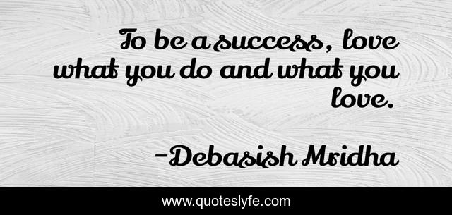 This page presents the quote "To be a success, love what you do and what you love.". Author of this quote is Debasish Mridha. This quote is about what-you-love, love, philosophy, debasish-mridha, debasish-mridha-m-d, quotes, inspirational, enthusiasm, love-what-you-do,.