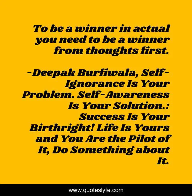 "Deepak Burfiwala, Self-Ignorance Is Your Problem. Self-Awareness Is Your Solution.: Success Is Your Birthright! Life Is Yours and You Are the Pilot of It, Do Something about It. Quotes." Quoteslyfe.com, 2025. Fri. 05 Dec. 2025. <https://www.quoteslyfe.com/quote/To-be-a-winner-in-actual-you-33143>.
