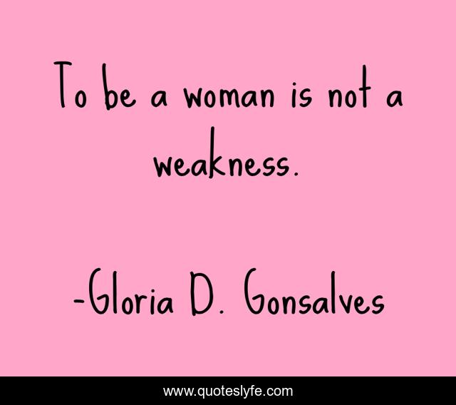 This page presents the quote "To be a woman is not a weakness.". Author of this quote is Gloria D. Gonsalves. This quote is about quote, quotes,.
