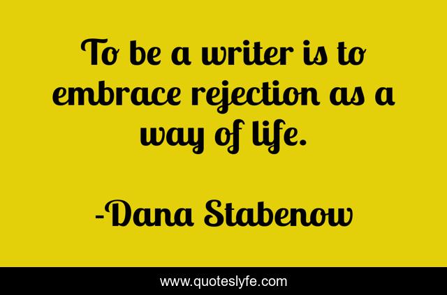 This page presents the quote "To be a writer is to embrace rejection as a way of life.". Author of this quote is Dana Stabenow. This quote is about author, biographical-note, liam-campbell, writing, kate-shugak, alaskan-author, star-svensdotter, dana-stabenow,.
