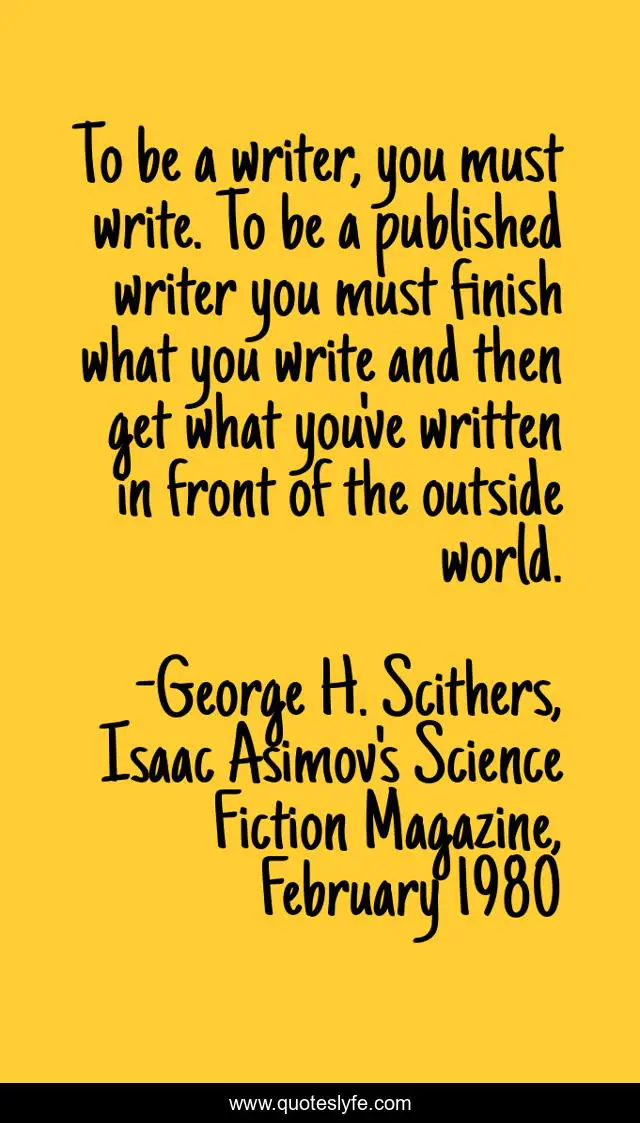 "George H. Scithers, Isaac Asimov's Science Fiction Magazine, February 1980 Quotes." Quoteslyfe.com, 2025. Sun. 07 Dec. 2025. <https://www.quoteslyfe.com/quote/To-be-a-writer-you-must-write-227101>.