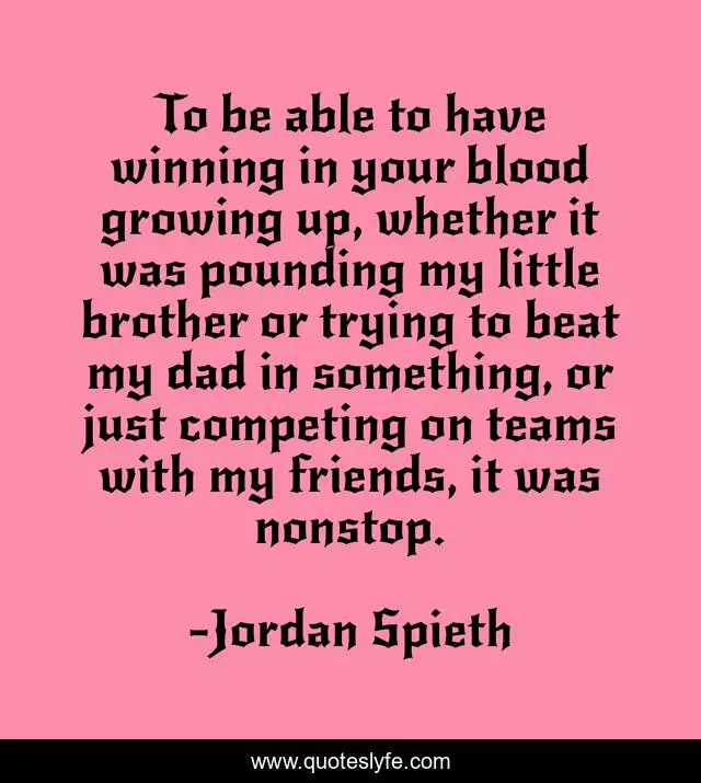 This page presents the quote "To be able to have winning in your blood growing up, whether it was pounding my little brother or trying to beat my dad in something, or just competing on teams with my friends, it was nonstop.". Author of this quote is Jordan Spieth. This quote is about friends, brother, winning,.