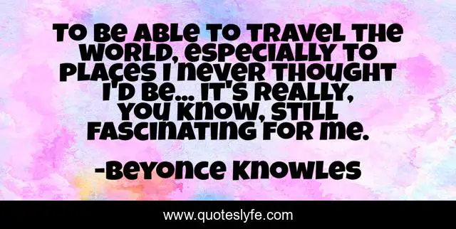 "Beyonce Knowles Quotes." Quoteslyfe.com, 2025. Fri. 05 Dec. 2025. <https://www.quoteslyfe.com/quote/To-be-able-to-travel-the-world-311805>.