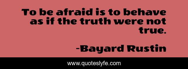 This page presents the quote "To be afraid is to behave as if the truth were not true.". Author of this quote is Bayard Rustin. This quote is about afraid, true, behave,.