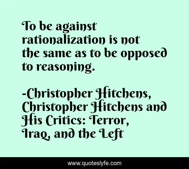 "Christopher Hitchens, Christopher Hitchens and His Critics: Terror, Iraq, and the Left Quotes." Quoteslyfe.com, 2025. Fri. 05 Dec. 2025. <https://www.quoteslyfe.com/quote/To-be-against-rationalization-is-not-the-189641>.