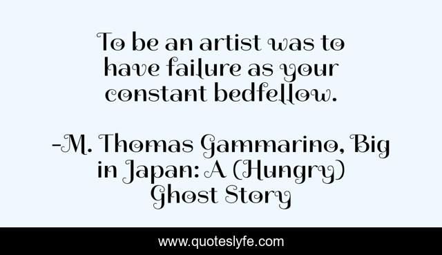 This page presents the quote "To be an artist was to have failure as your constant bedfellow.". Author of this quote is M. Thomas Gammarino, Big in Japan: A (Hungry) Ghost Story. This quote is about failure, creativity, artists,.