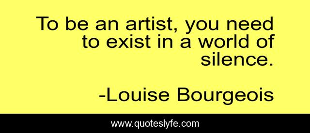 This page presents the quote "To be an artist, you need to exist in a world of silence.". Author of this quote is Louise Bourgeois. This quote is about silence, artist,.