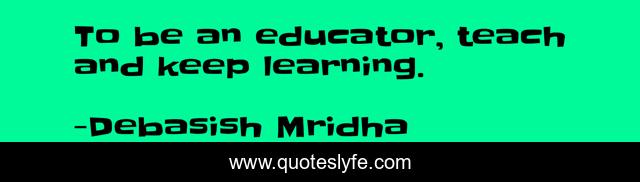 This page presents the quote "To be an educator, teach and keep learning.". Author of this quote is Debasish Mridha. This quote is about inspirational, philosophy, debasish-mridha, quotes, learning, educator, enthusiasm, education, debasish-mridha-m-d,.
