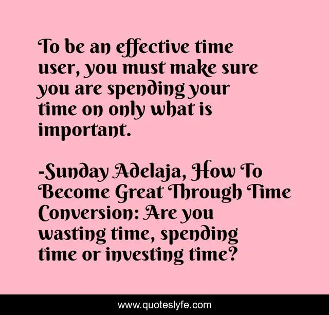 "Sunday Adelaja, How To Become Great Through Time Conversion: Are you wasting time, spending time or investing time? Quotes." Quoteslyfe.com, 2025. Fri. 05 Dec. 2025. <https://www.quoteslyfe.com/quote/To-be-an-effective-time-user-you-39369>.