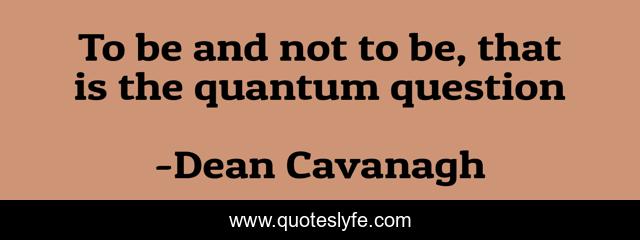 This page presents the quote "To be and not to be, that is the quantum question". Author of this quote is Dean Cavanagh. This quote is about quantum, life, shakespeare,.