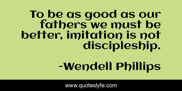 This page presents the quote "To be as good as our fathers we must be better, imitation is not discipleship.". Author of this quote is Wendell Phillips. This quote is about better, good, imitation,.