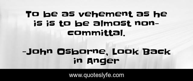 This page presents the quote "To be as vehement as he is is to be almost non-committal.". Author of this quote is John Osborne, Look Back in Anger. This quote is about angry-young-men, drama,.