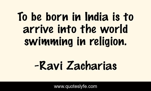 This page presents the quote "To be born in India is to arrive into the world swimming in religion.". Author of this quote is Ravi Zacharias. This quote is about born, swimming, world,.