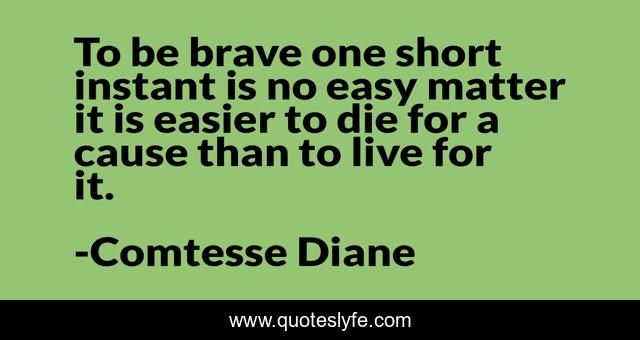 This page presents the quote "To be brave one short instant is no easy matter it is easier to die for a cause than to live for it.". Author of this quote is Comtesse Diane. This quote is about courage, bravery,.