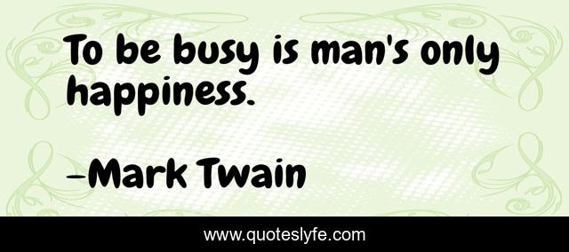 This page presents the quote "To be busy is man's only happiness.". Author of this quote is Mark Twain. .