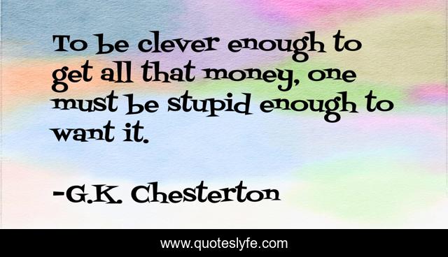 This page presents the quote "To be clever enough to get all that money, one must be stupid enough to want it.". Author of this quote is G.K. Chesterton. .