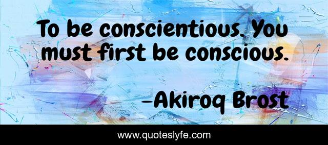 This page presents the quote "To be conscientious. You must first be conscious.". Author of this quote is Akiroq Brost. This quote is about awaken, awareness, perspective, truth,.