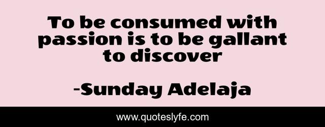This page presents the quote "To be consumed with passion is to be gallant to discover". Author of this quote is Sunday Adelaja. This quote is about gallant, passion, consume, discover,.