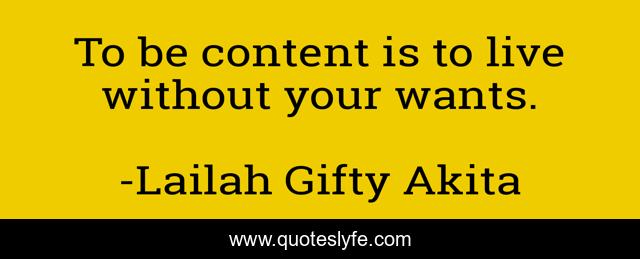 This page presents the quote "To be content is to live without your wants.". Author of this quote is Lailah Gifty Akita. This quote is about faith, confidence, christian, positive, motivational, content, wishes, optimistic, inspirational,.