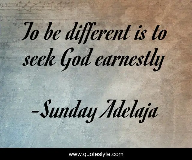 This page presents the quote "To be different is to seek God earnestly". Author of this quote is Sunday Adelaja. This quote is about different, seek, earnestly,.