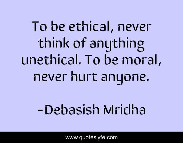 This page presents the quote "To be ethical, never think of anything unethical. To be moral, never hurt anyone.". Author of this quote is Debasish Mridha. This quote is about ethical, philosophy, debasish-mridha, be-moral, quotes, inspirational, enthusiasm, unethical, debasish-mridha-m-d,.